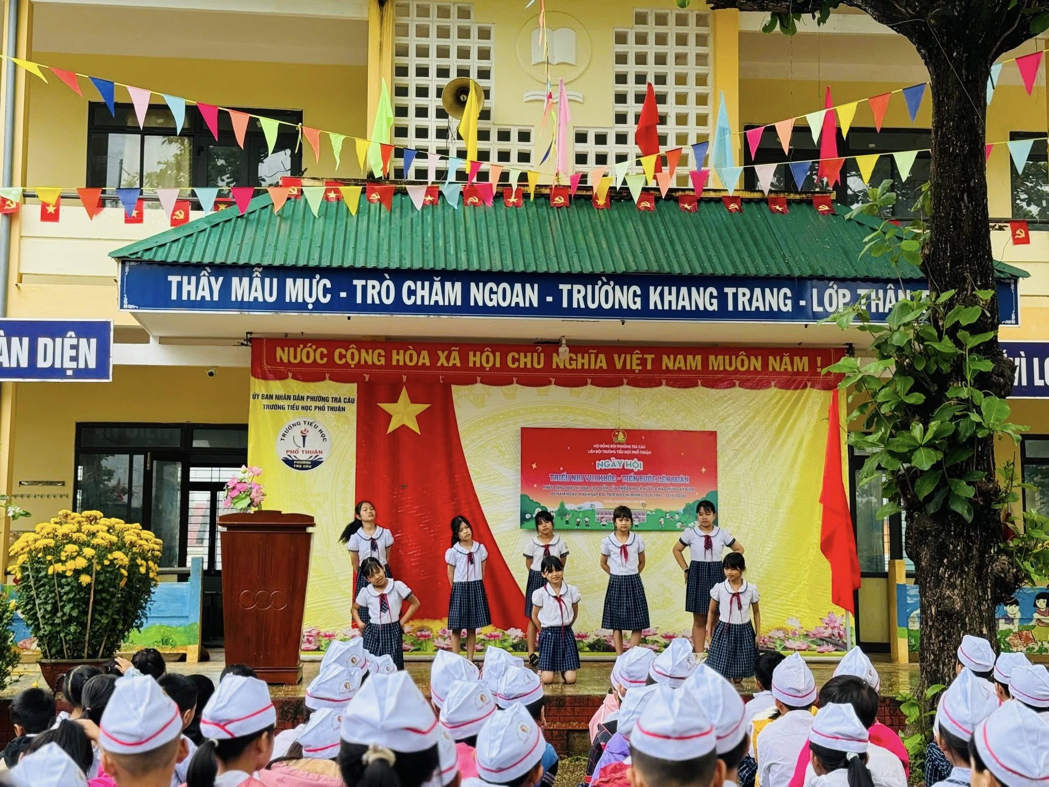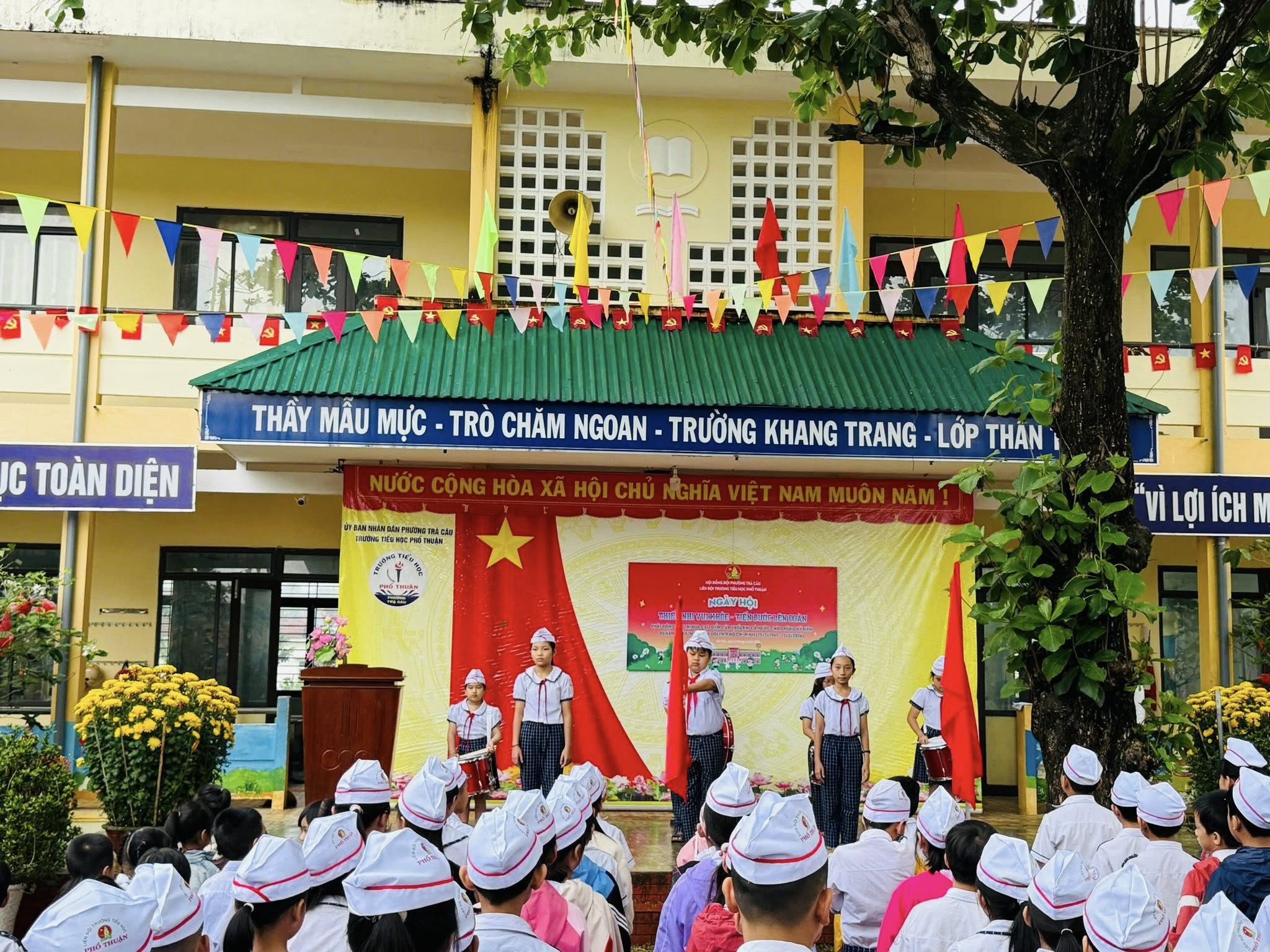 Liên đội Trường Tiểu học Phổ Thuận đã tổ chức Ngày hội “Thiếu nhi vui khỏe – Tiến bước lên Đoàn” trong không khí vui tươi, sôi nổi. Đây là hoạt động ý nghĩa nhằm tạo sân chơi lành mạnh, giúp các em đội viên, nhi đồng rèn luyện sức khỏe, phát huy tinh thần đoàn kết và phấn đấu học tập, rèn luyện tốt.